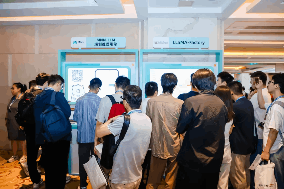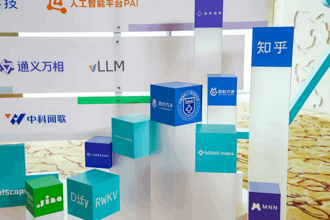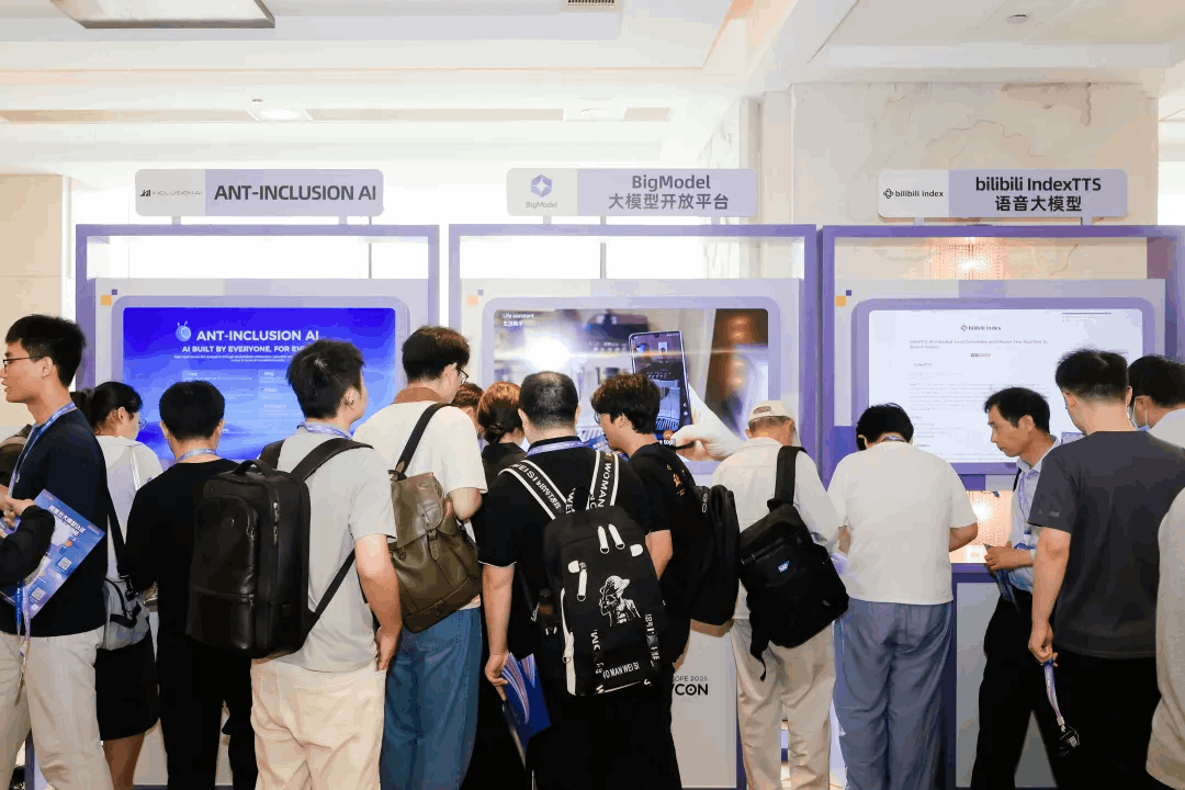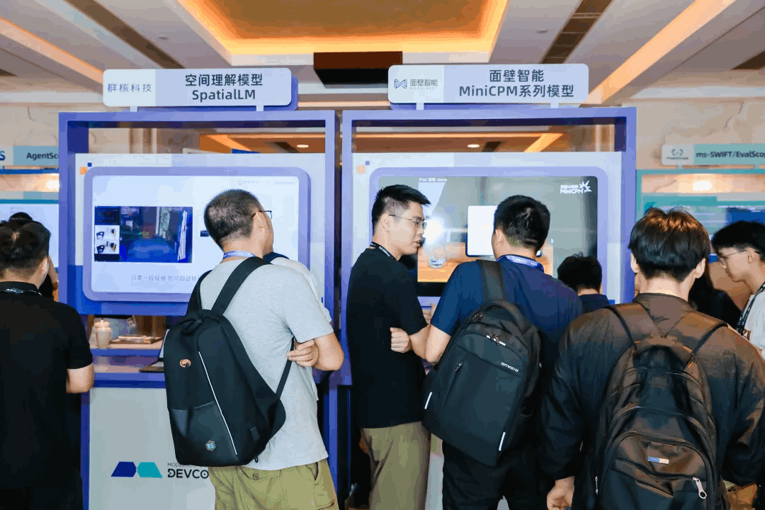 Booth展区重点聚焦三大板块:基础模型、Agent&MCP 与模型工具链。 众多开源项目作者亲临现场,与现场观众展开了积极交流和互动。