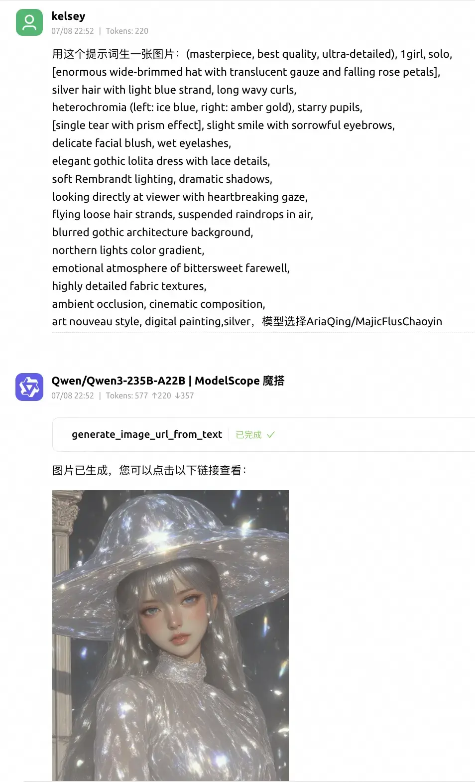 比如让LLM根据我给的提示词和模型,给我生成图片: