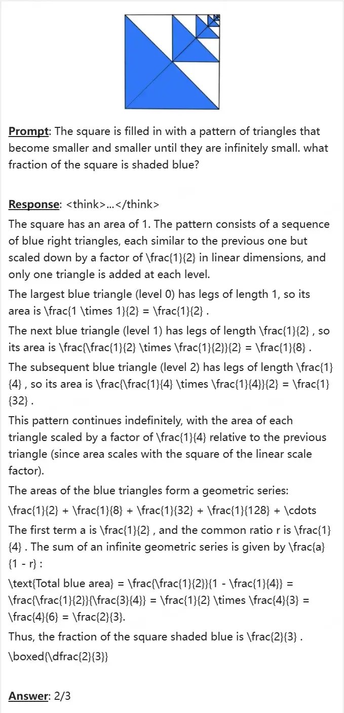 支持复杂多步运算、长图理解、一题多解,完全胜任奥数、STEM 类视觉-文本混合解题任务。