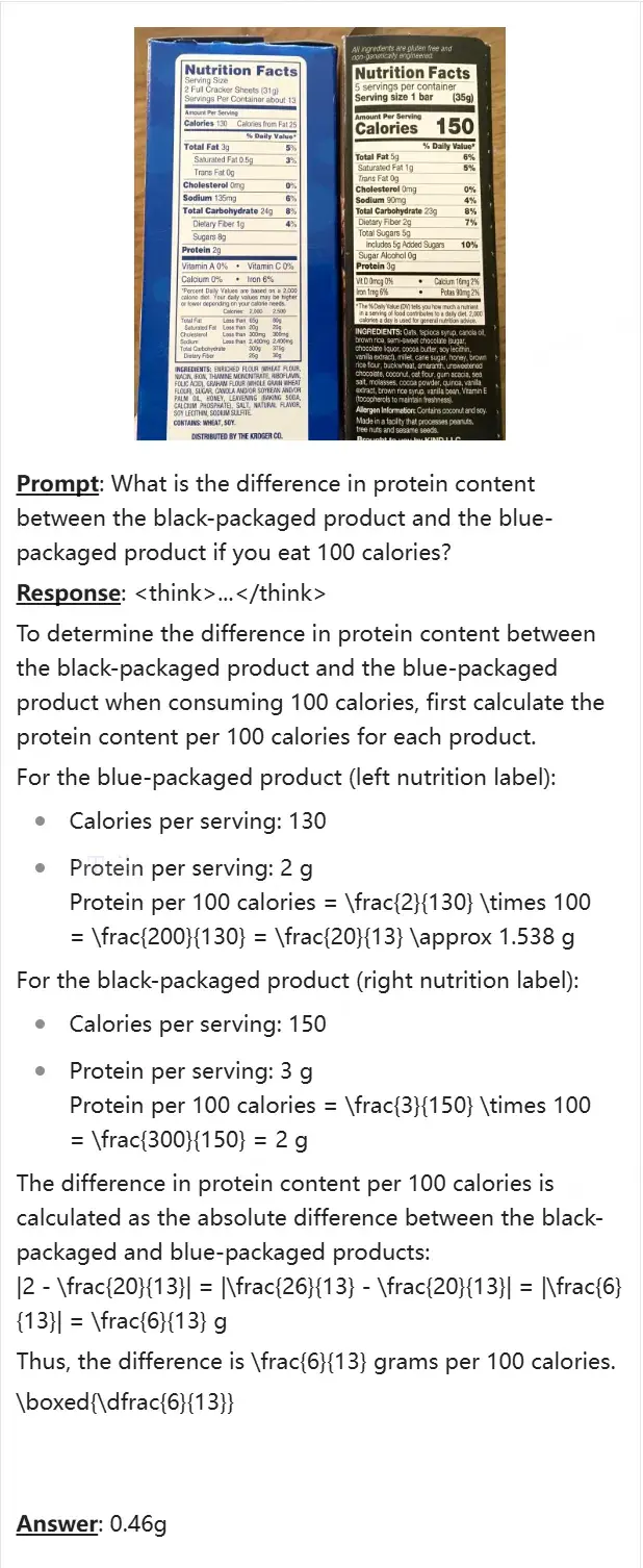 视觉推理:将引入强化学习等前沿算法,提升推理泛化能力,探索更强的推理前置技术。