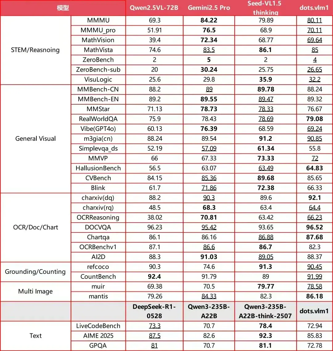 小红书 hi lab开源最强多模态大模型dots.vlm1,性能对标闭源 Gemini 2.5 Pro 和 Seed-VL1.5