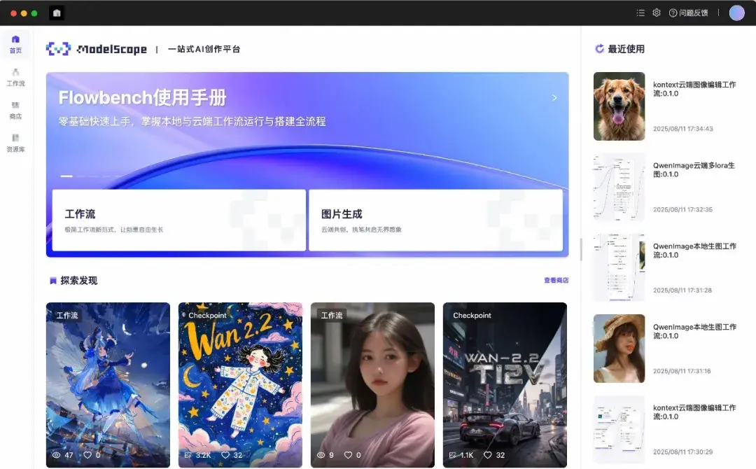 FlowBench 是以工作流位核心的一站式 AI 工作流创作平台,支持本地与云端资源协同运行,面向开发者、设计师及AI创作者提供高效、稳定、易用的可视化工作流体验。现已全面开放下载公测,原生支持QwenImage,诚邀每一位热爱生成艺术的你,共同开启高效、灵活、可控的 AI 创作新体验!