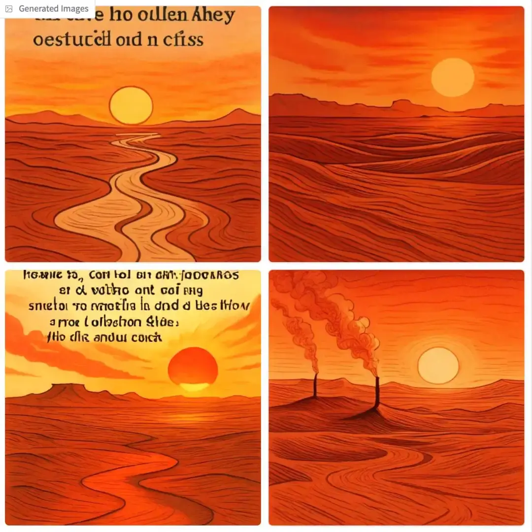 提示词:Illustration for the poem "The lonely smoke in the desert rises straight, the long river and the setting sun are round", highlighting the vastness of the desert and the magnificence of the setting sun(翻译:为大漠孤烟直起,长河落日圆一诗配插图,突出大漠的辽阔和落日的壮丽)