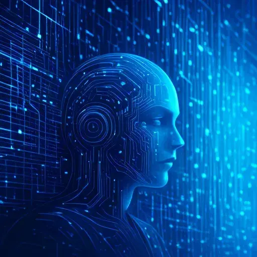 翻译:高分辨率的人工智能与大数据可视化场景,蓝色与白色为主色调,包含数据流、神经网络节点和数字矩阵背景,科技感强,光影柔和,适合科研杂志封面