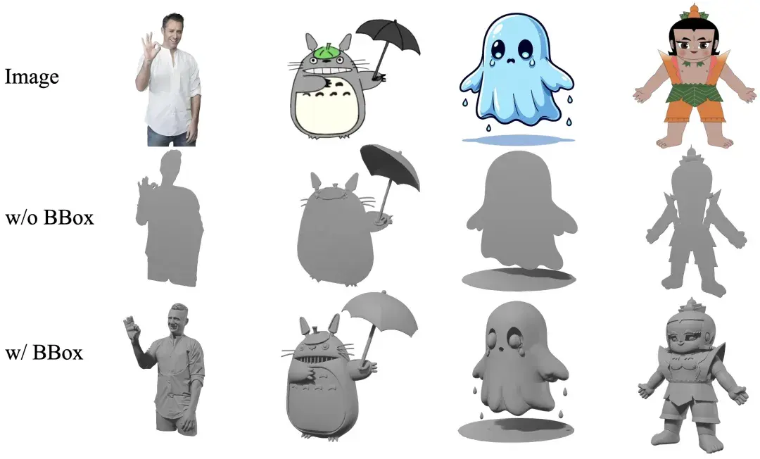 ● 点云:注入完整物体点云或从深度图投影的部分点云,帮助消除单张图像的视觉歧义,提升几何细节,让3D模型更逼真可靠;