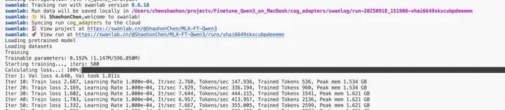 https://swanlab.cn/@ShaohonChen/MLX-FT-Qwen3/runs/lqitoakl4gnswhk15xmp3/chart