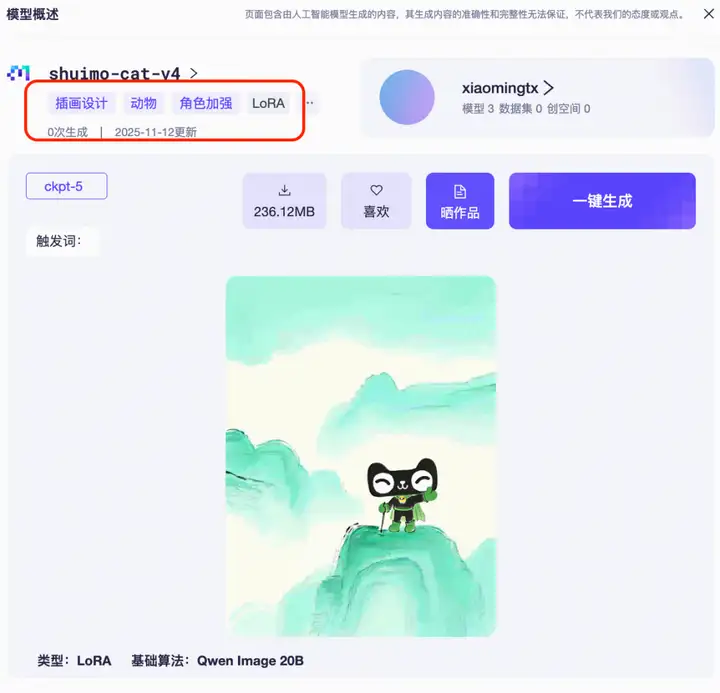 在各领域大模型持续发布和迭代的同时,这个月我们也关注到了图片生成领域,一个围绕Qwen-Image系列模型的生态正在形成。从Qwen-Image系列模型发布伊始,我们就通过开源DiffSynth框架提供了模型的推理优化以及训练能力,并基于DiffSynth框架,支持了ModelScoe的AIGC专区。在过去的一个月里,我们看到了这一系列工具和服务化的能力,在催生生态繁荣方面,正在陆续开花结果。在ModelScope的AIGC专区上训练出来基于Qwen-Image系列基础模型的LoRA,数量已经迅速接近10K。而其中包括KOL wuli大雄的一系列作品,不仅受到ModelScope用户的欢迎,同时多个LoRA也在Hugging Face等社区上强势出圈,有多个LoRA都登上HF Trending榜。此外DiffSynth框架也被更多的海内外开发者所关注,Eigen-AI Labs基于DiffSynth训练的eigen-banana-qwen-image-edit模型,同样也在HF trending中。