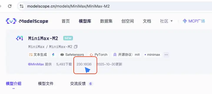 7. 模型页面展示模型仓库文件大小统计,方便大家对于一个开源模型的整体存储和资源占用有更直观的理解。