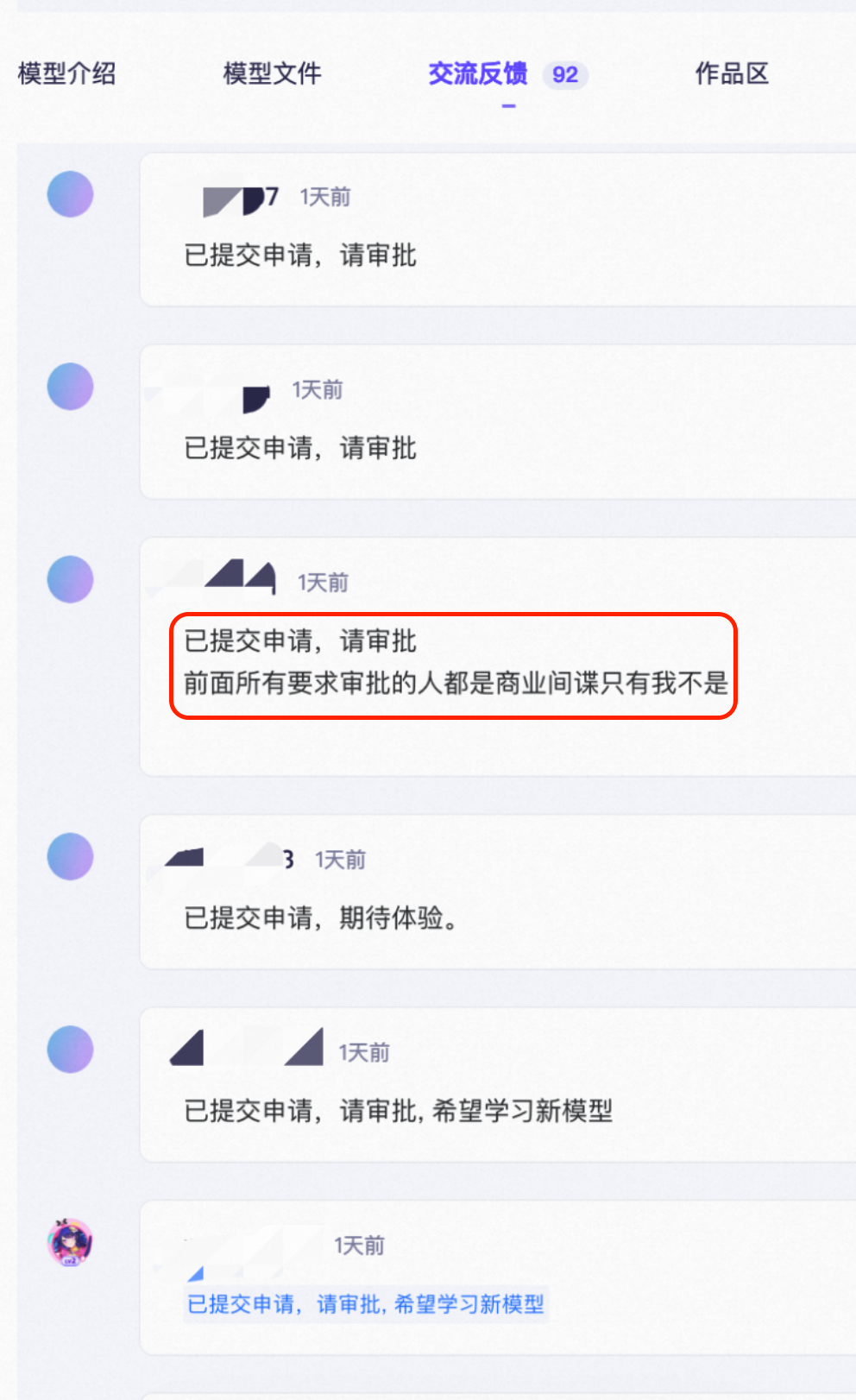 Z-Image在ModelScope上做开源首发之前,就提前接入了ModelScope的AIGC专区,供开发者试用。调试期间,模型短暂开启了“申请制”要求,在AIGC专区体验了模型及其强大的效果之后,众多的开发者排队求申请通过,甚至玩起了梗:
