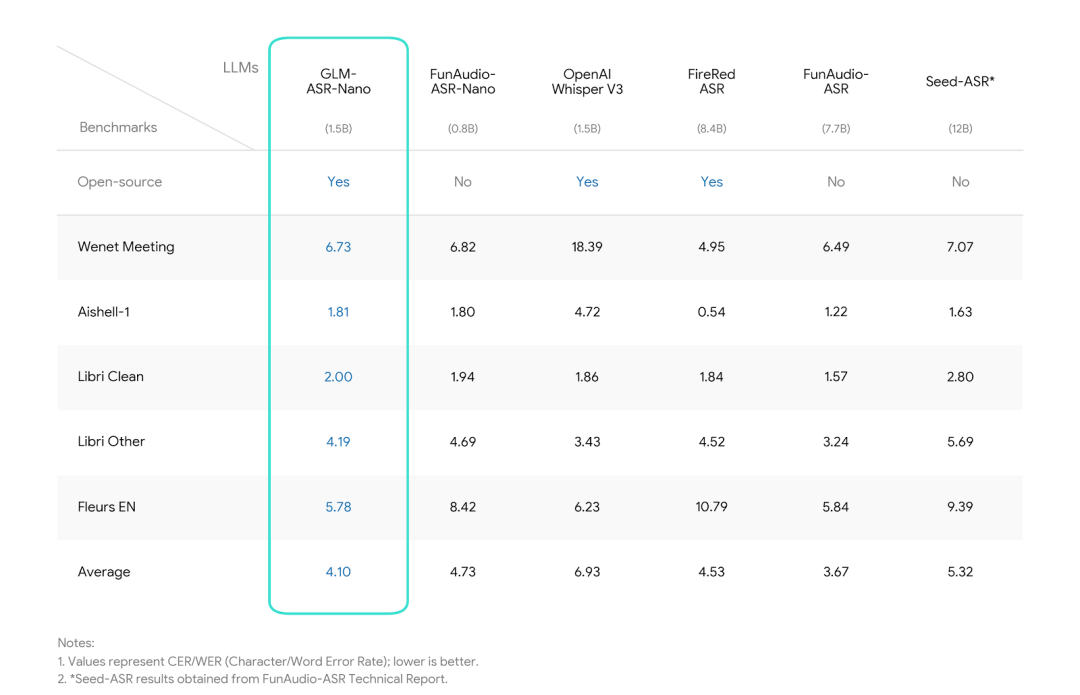 - GLM-ASR-Nano-2512:参数量仅1.5B的开源SOTA端侧语音模型;