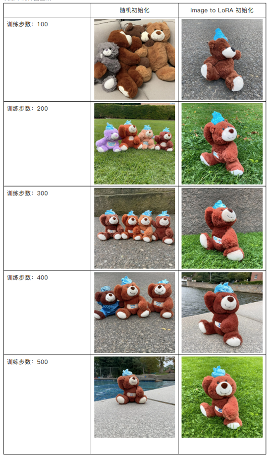 可以看到,使用 Image to LoRA 模型做 LoRA 训练的初始化时,在训练的早期阶段就已能够生成与训练数据相似的物体。