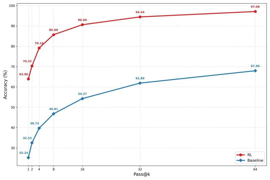 以“信号去噪”修正 RL 奖励偏差。智能体任务的轨迹动辄数十步,小模型对长链路中的负面信号极其敏感。一旦长序列在最后一步出错,传统 RL 会将惩罚回传至整条链路,导致中间正确的推理步骤也被“误杀”,致使模型训练崩塌。 研究团队实施严格的奖励信号去噪。筛选真正具备策略更新价值的轨迹,对于长步骤但最终失败的样本,不进行全轨迹惩罚,避免负面信号污染模型已学到的正确推理逻辑,保护小模型脆弱的训练。