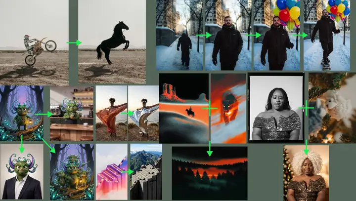 - 多参考生成:结合多张输入图像,混合概念并生成复杂组合