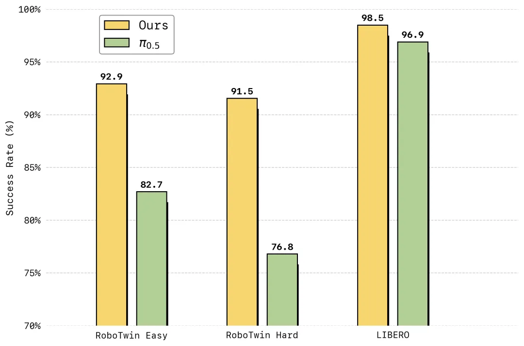 这一系列设计,使得 LingBot-VA 在拥有大模型深刻理解能力的同时,也具备了在真实机器人上进行低延迟控制的响应速度。