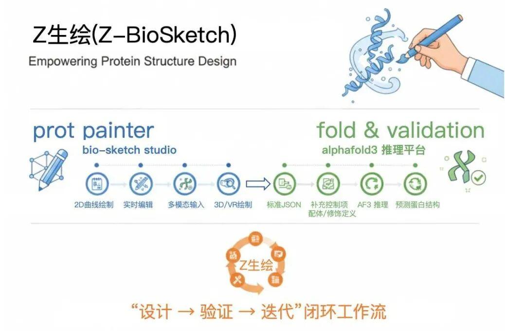 Z生绘希望把“蛋白质结构设计”从少数专家才能操作的复杂流程,变成人人可用、可复现、可协作的创作体验:你既可以像画画一样表达拓扑与结构意图,也可以在同一个平台里完成结构预测、全原子建模与质量评估,形成“设计 → 验证 → 迭代”的闭环。
