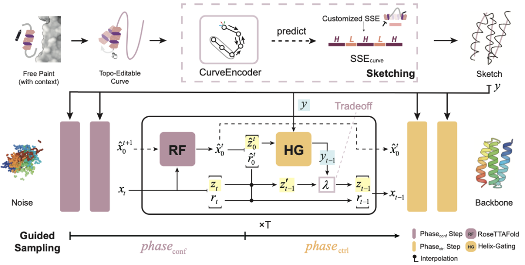 我们希望围绕我们的最新工作: ProtPainter: Draw or Drag Protein via Topology-guided Diffusion的核心思想持续建设“画蛋白”能力:以 3D 曲线/拓扑作为可控条件,通过分阶段生成与引导策略提升可控性与稳定性,并逐步开放复现配置、关键模块说明与案例教程,支持社区一起复现、对比与扩展。