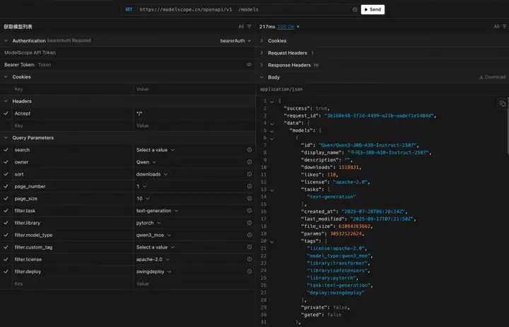 - OpenAPI规范:https://modelscope.cn/.well-known/openapi.json