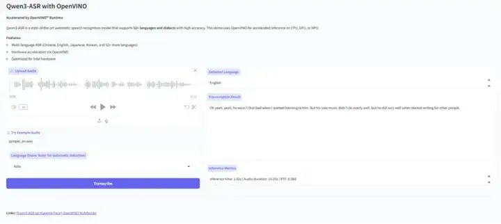 魔搭社区+OpenVINO™ 加速部署 Qwen3-ASR 实战