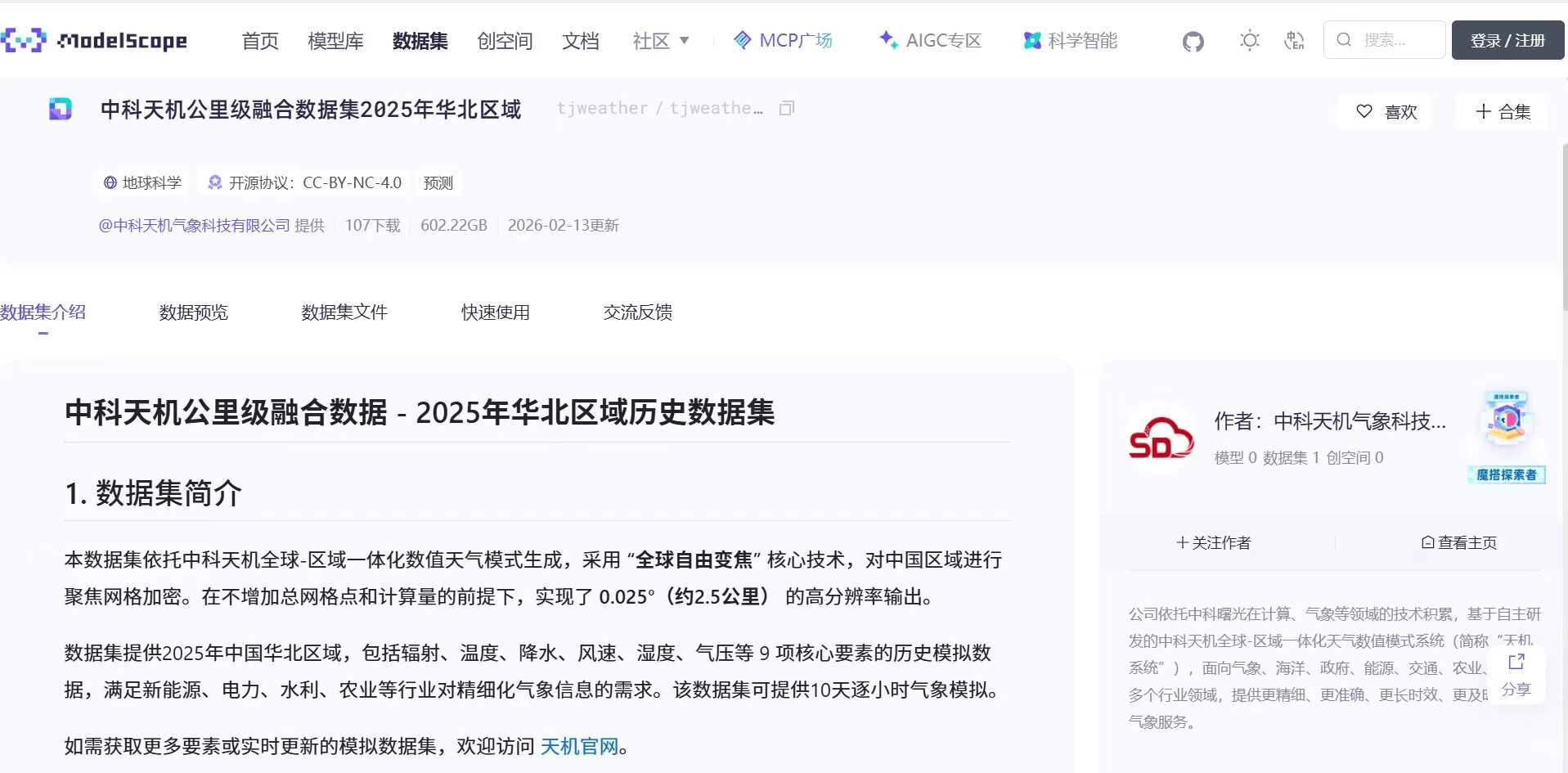 点击直达中科天机数据集:https://www.modelscope.cn/datasets/tjweather/tjweather_TJ-CN_2025_huabei