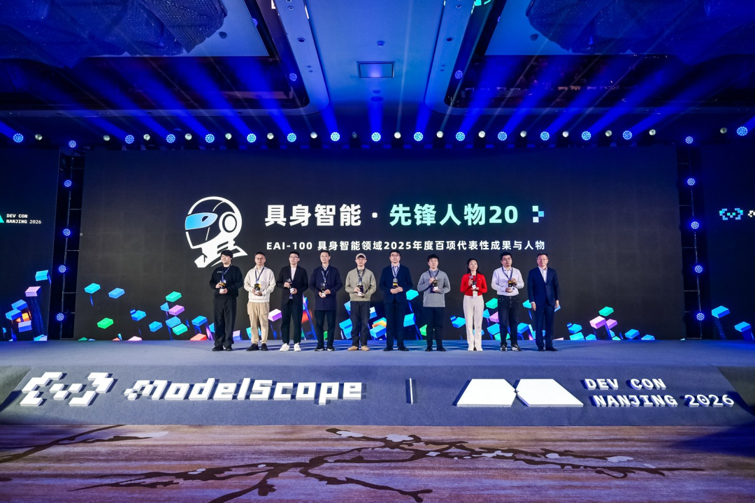 由魔搭社区(ModelScope)、CCF智能机器人专委会、工信部装备数字孪生技术重点实验室、Lumina具身智能社区、开放原子开源青龙、地瓜机器人、机器人操作系统(ROS)教育基金会、真格基金以及知乎、36氪研究院、Datawhale、无限演化等专业及媒体组织联合发起的《EAI-100 具身智能领域2025年度百项代表性成果与人物》榜单及配套白皮书,于3月22日在智汇金陵·AI开源人才峰会暨魔搭开发者大会上正式重磅发布。